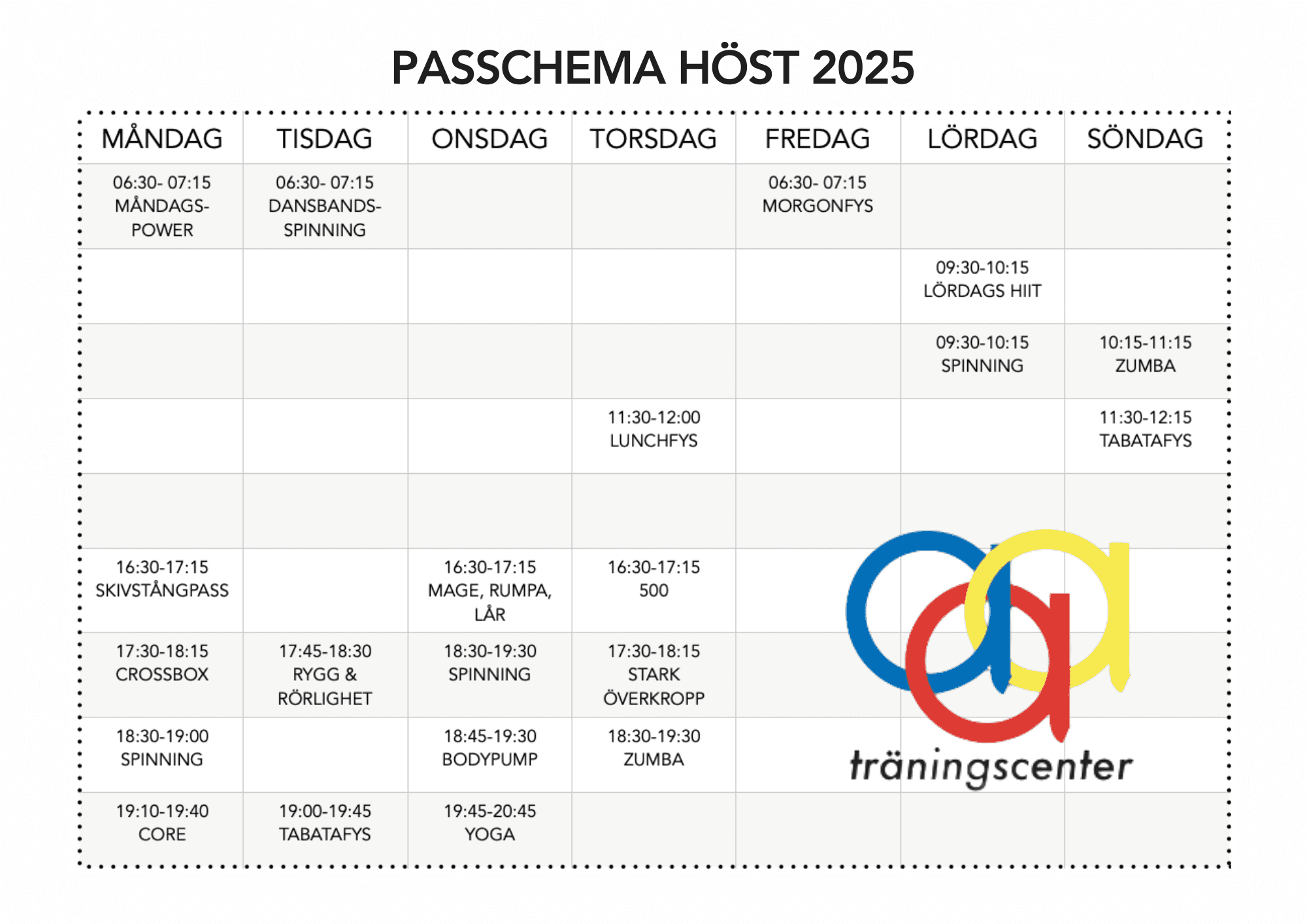 Hitta dina favoriter i vårt utbud av roliga och varierande pass. Att träna i grupp är både roligt och effektivt. Boka passen i vår app Gymcontrol. Vi ses i passalen.